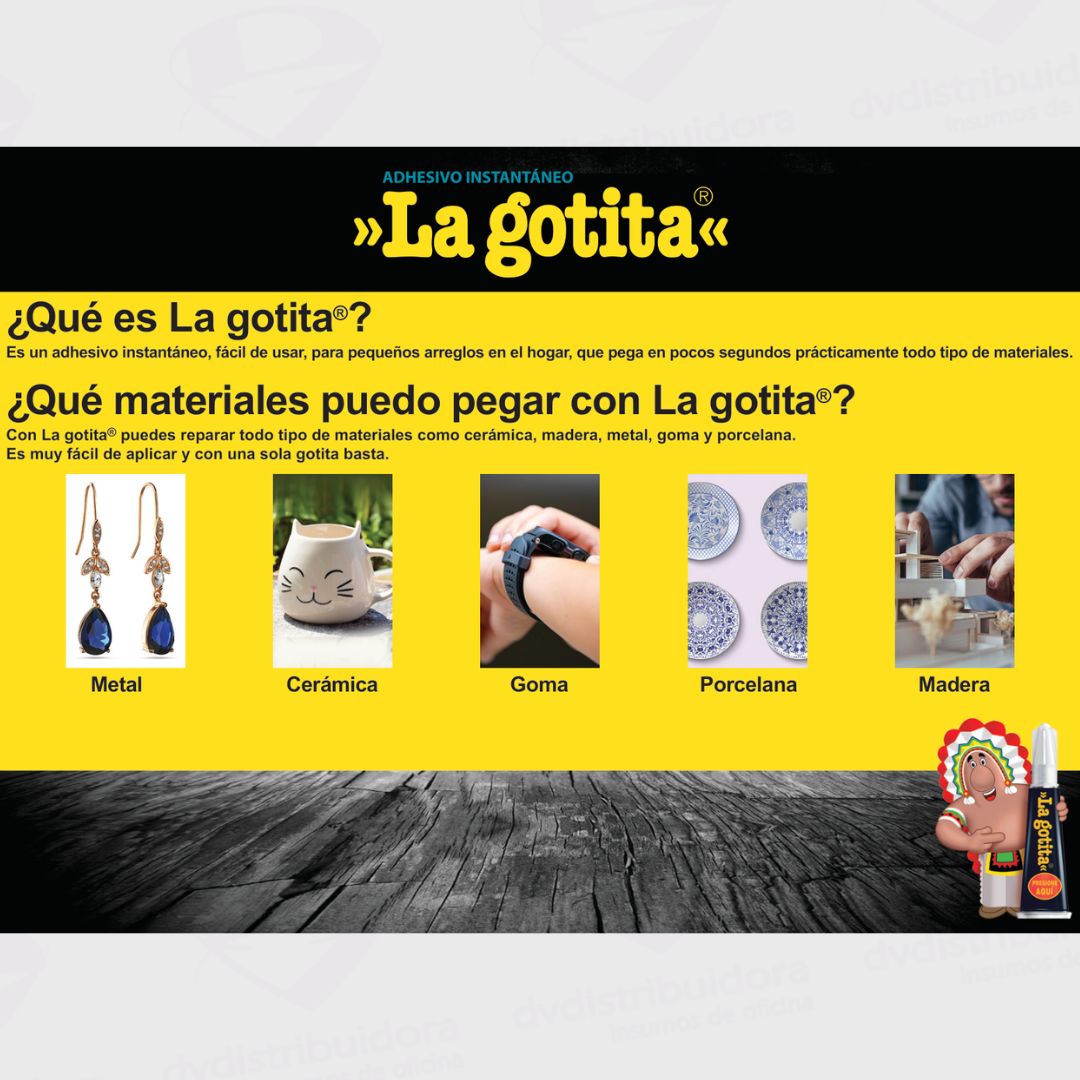 Con La Gotita 2Ml, soluciona rápidamente problemas en la oficina y el hogar y mantén todo en perfecto estado. Ideal para reparaciones rápidas en una amplia variedad de situaciones y materiales.