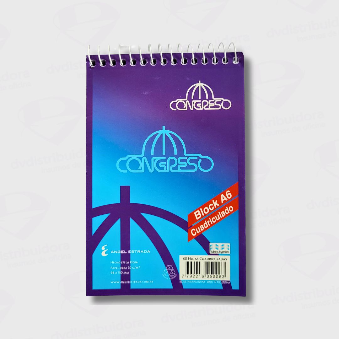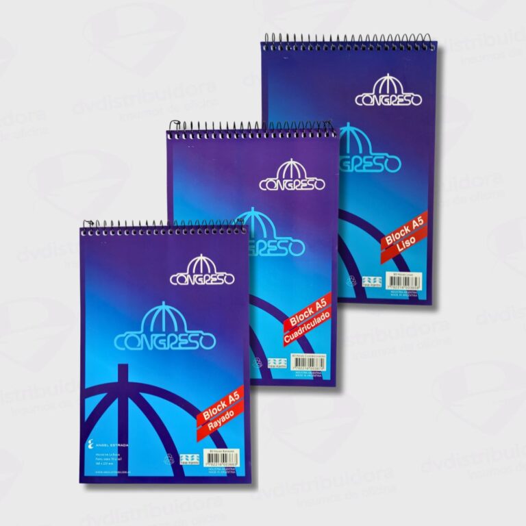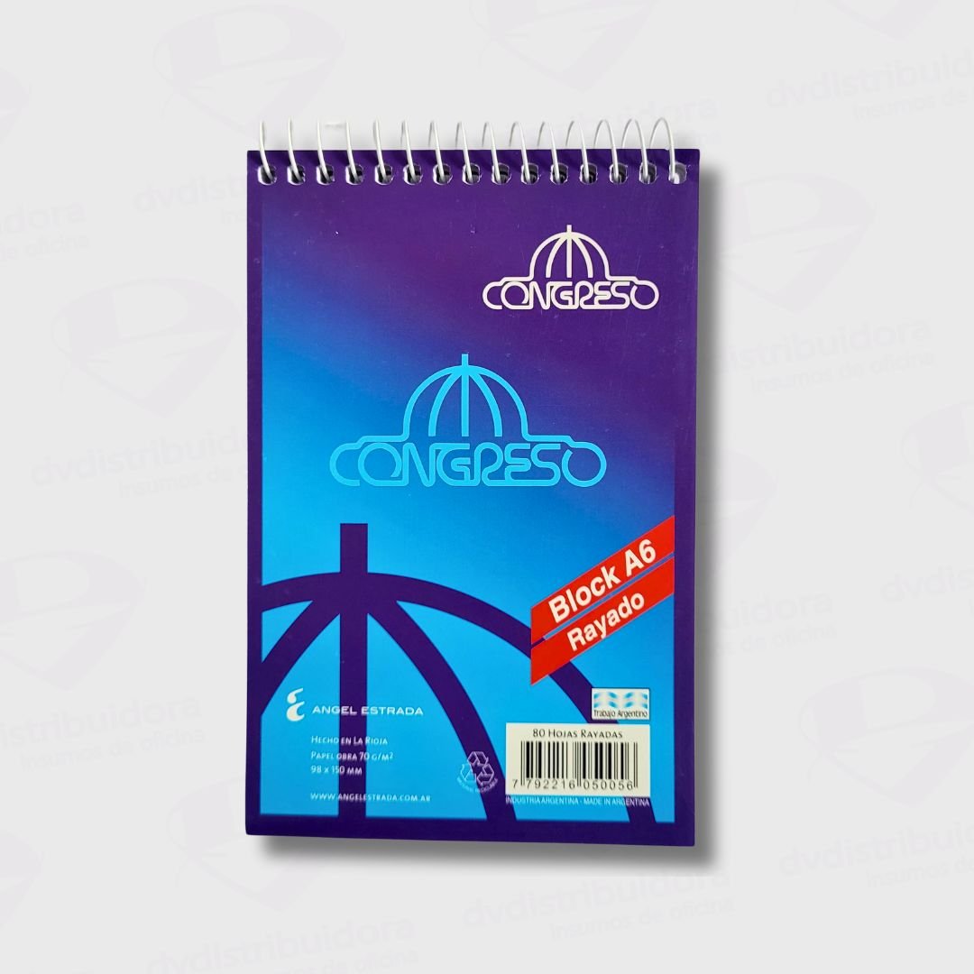 El Block Anotador Congreso A6 con Espiral se vende por unidad. Su diseño clásico lo hace ideal para uso diario en la oficina, la escuela o en casa.