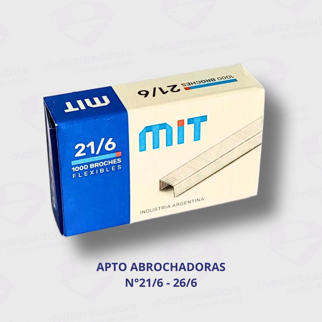 Los Broches Ganchos Mit para Abrochadora 21/6 se venden en caja de 1000 unidades, presentados de manera individual. Ideales para múltiples usos en el día a día.