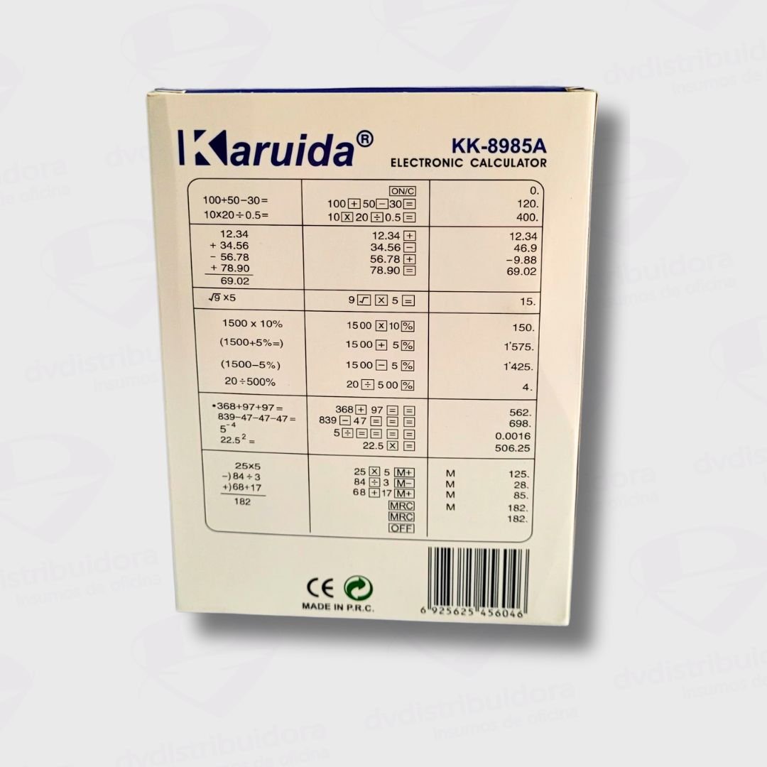 La Calculadora Karuida de 8 Dígitos, es esencial para tu rutina diaria en la oficina, escuela o en casa. Con pantalla amplia y tecla de sonido, esta calculadora electrónica simplifica tus cálculos diarios de manera rápida y fácil. Su diseño compacto la hace ideal para llevar a todas partes.