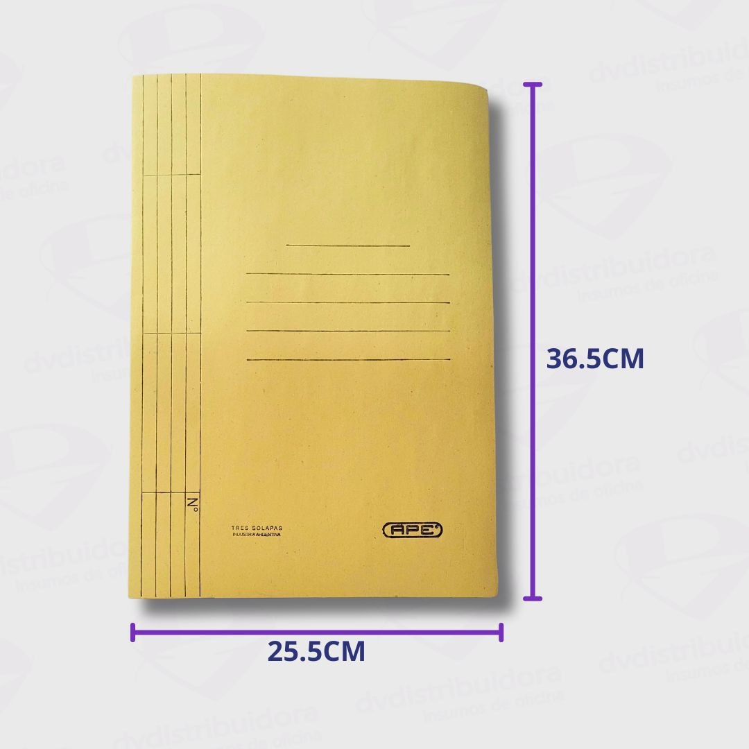 La Carpeta de 3 solapas APE, se vende por unidad y está diseñada en tamaño oficio para mayor comodidad. Con 3 solapas que facilitan la organización de tus documentos, este producto es ideal para uso en la oficina, en la escuela o en el hogar. Los colores disponibles incluyen opciones vibrantes que añadirán un toque de color a tu día a día.