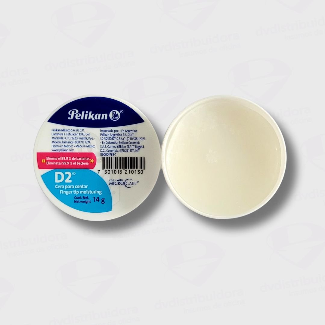 La Cera dactilar Pelikan, ideal para contar hojas, billetes y más. Con un agradable aroma floral, esta cera es perfecta para su uso en bancos, oficinas y expendios de comida. Disfruta de la practicidad y eficiencia que ofrece este producto de alta calidad.