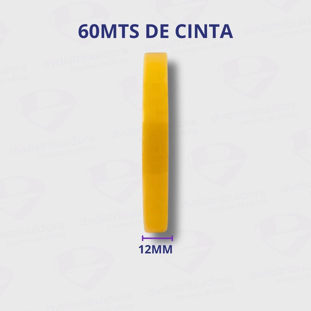 Cinta Adhesiva para escritorio de la marca Stiko, con sus medidas de 12mm de ancho y 60mts de largo. En color Transparente. Es una cinta adhesiva de uso general para cualquier tipo de porta cinta grande de escritorio.
