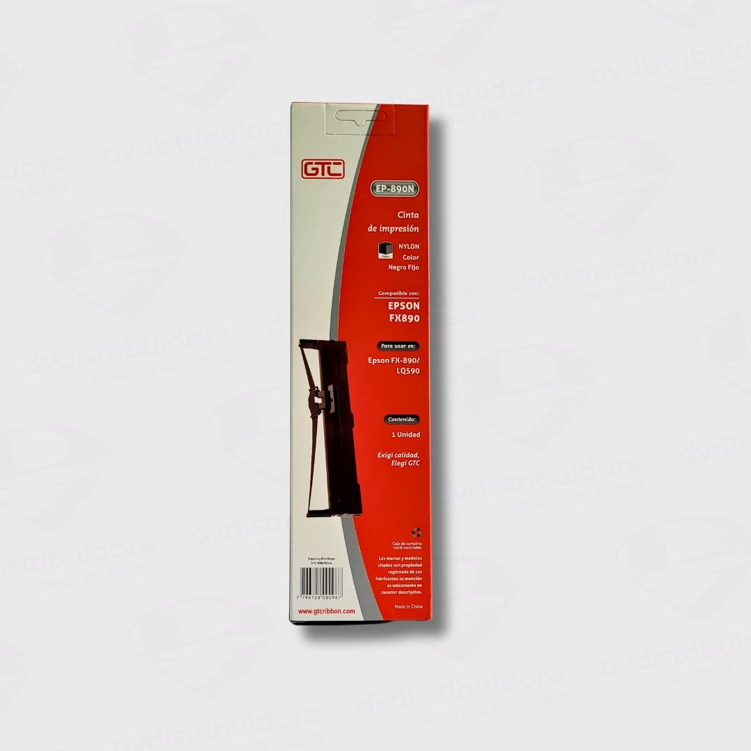 La Cinta de Impresora Epson Alternativa FX-890 de la marca GTC, se destaca por su rendimiento superior y calidad de impresión nítida a un costo más económico en comparación con las cintas originales, brindando un excelente valor a nuestros clientes.