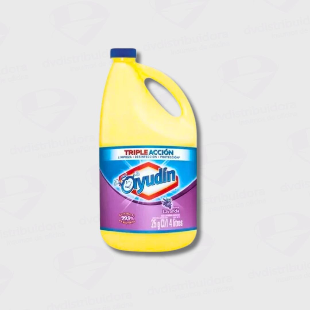 La Lavandina Ayudin, se vende por unidad en bidón de 4 litros, ofreciendo una solución efectiva para mantener la higiene en cocinas, baños, pisos y exteriores. Disponible en aroma lavanda.