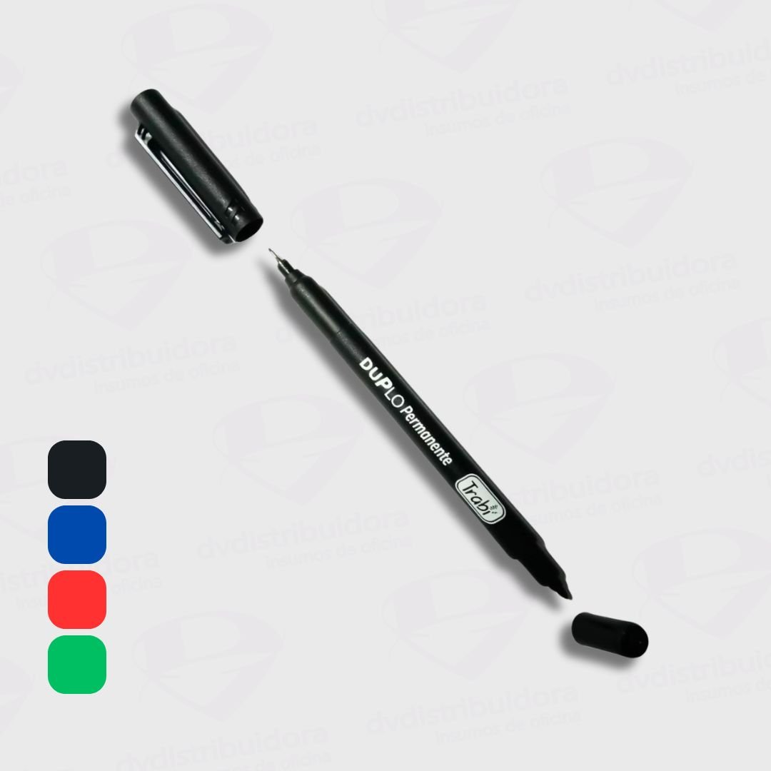 El marcador Trabi Duplo, se vende por unidad. 4 colores disponibles, Negro, Azul, Rojo y Verde.