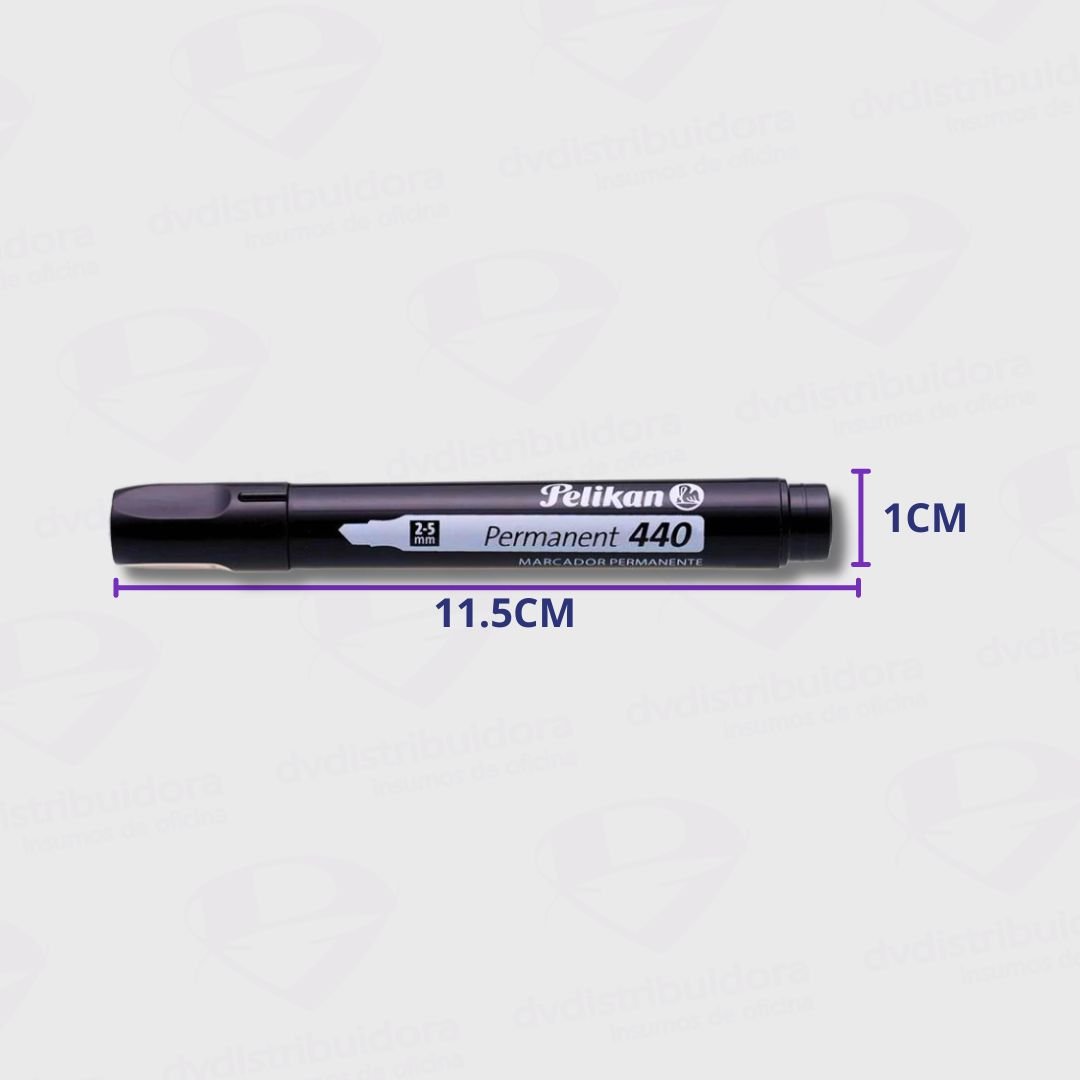Marcador de tinta permanente, de la marca Pelikan, con su modelo 440. De cuerpo redondo. Punta cuadrada de 3 anchos de linea 1mm, 3mm y 5mm de gran resistencia. Capuchón ventilado. Tinta solvente, resistente al agua y de secado instantáneo. Ideal para escribir sobre casi todas las superficies. Colores brillantes e intensos.