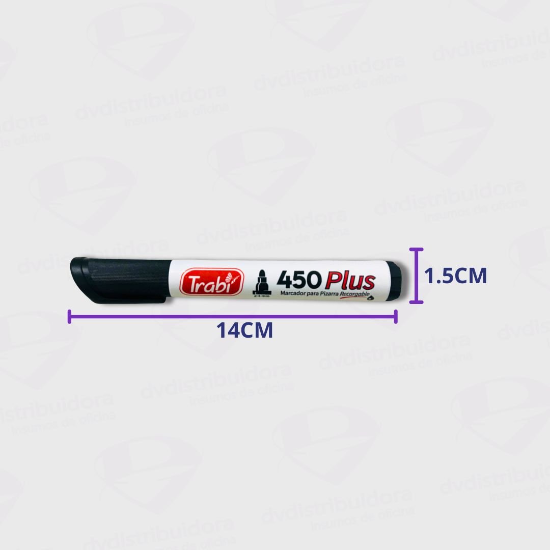 El Marcador para pizarra de la marca Trabi, con su modelo 450 Plus recargable con tinta Trabi, es la herramienta ideal para presentaciones impactantes. Con la capacidad de borrarse en seco sobre superficies no porosas como pizarras laminadas, cristal, melanina o esmalte, este marcador Trabi garantiza un rendimiento excepcional en cada uso. El marcador 450 para pizarra en colores variados, es el complemento perfecto para resaltar tus ideas y mensajes de forma clara y vibrante. Con una punta redonda resistente y de alta calidad, este marcador ofrece una escritura suave y precisa, ideal para presentaciones, reuniones, y sesiones de estudio. Su tinta asegura un trabajo limpio y profesional en todo momento. Además, su diseño ergonómico garantiza una experiencia de escritura cómoda y sin fatiga, permitiéndote concentrarte en lo realmente importante. Atrévete a destacar con el marcador Trabi 450 y marca la diferencia en tus presentaciones y tareas diarias. Haz que tus ideas brillen con este marcador de calidad.