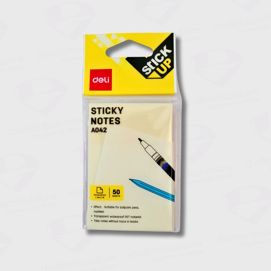 Notas Adhesivas Transparentes Deli 76MM x 51MM – Reutilizables y Ecológicas