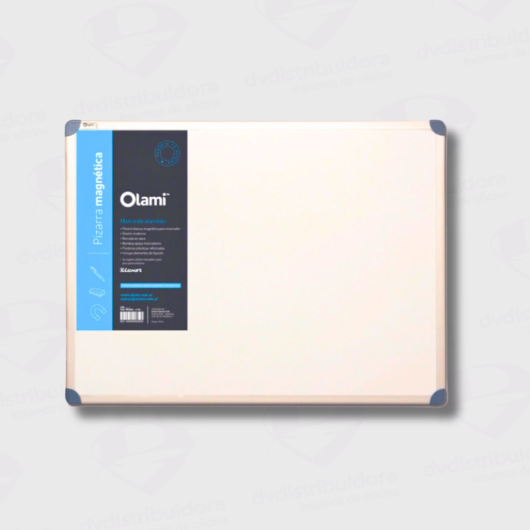 La Pizarra laminada Magnética Olami se vende por unidad y tiene unas medidas de 90cm x 120cm. Está disponible en un elegante color blanco que se adapta a cualquier entorno de oficina o estudio.