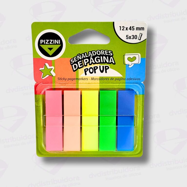 Banderitas Señaladoras Autoadhesivas Fluo Pizzini – 5 Blocks x 25 Hojas De 12MM x 45MM – Organiza Con Estilo Y Eficacia