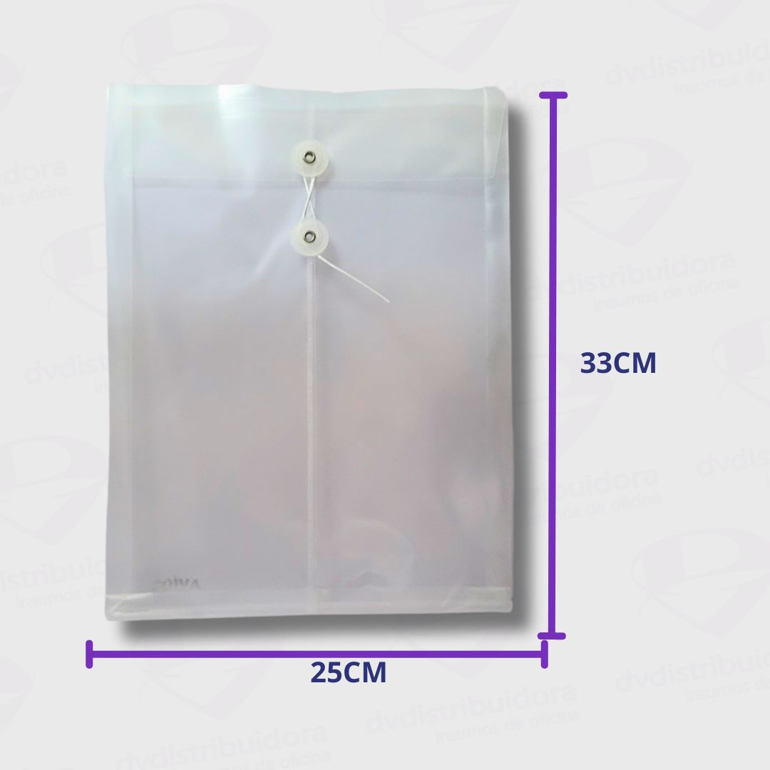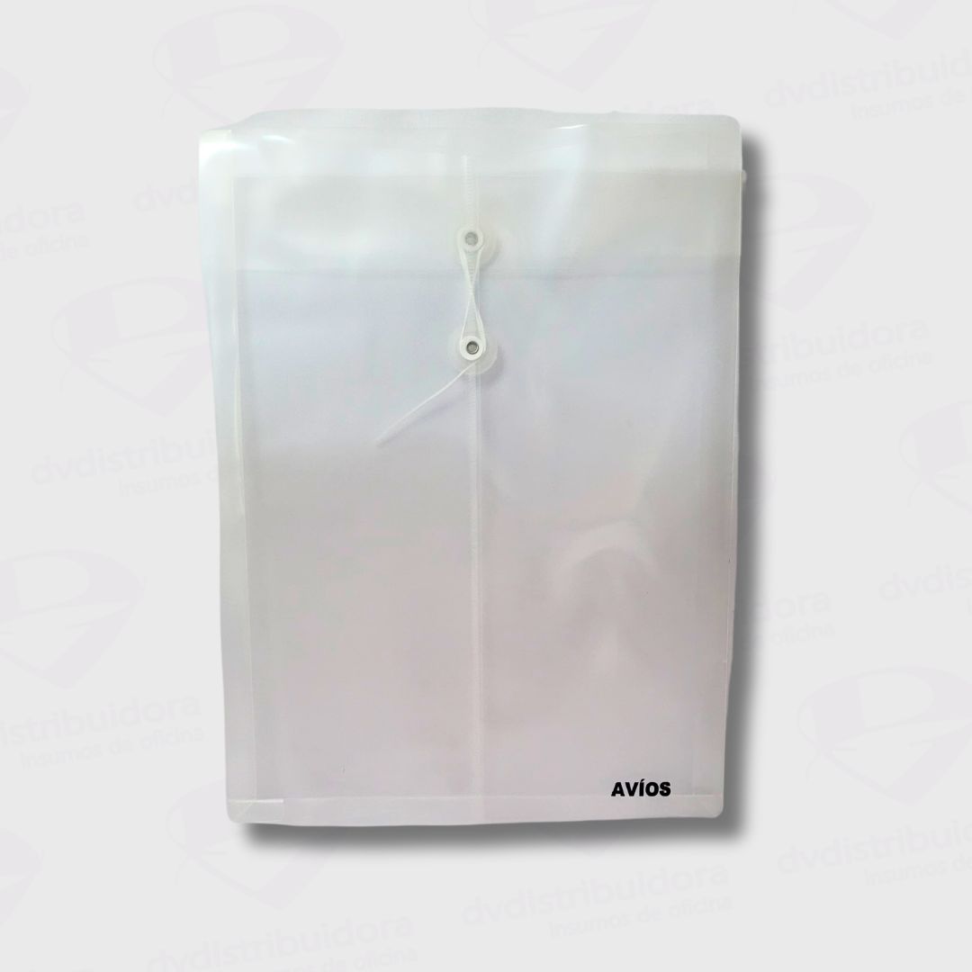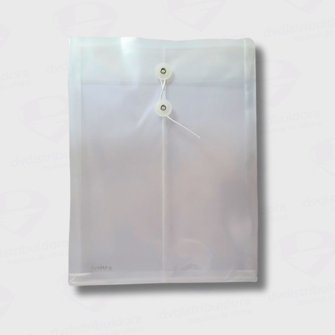 El Sobre de Plástico con Traba de Hilo se vende por unidad y está disponible en el tamaño estándar A4. Este sobre viene en colores transparente y negro, ofreciendo opciones para tus necesidades de organización.