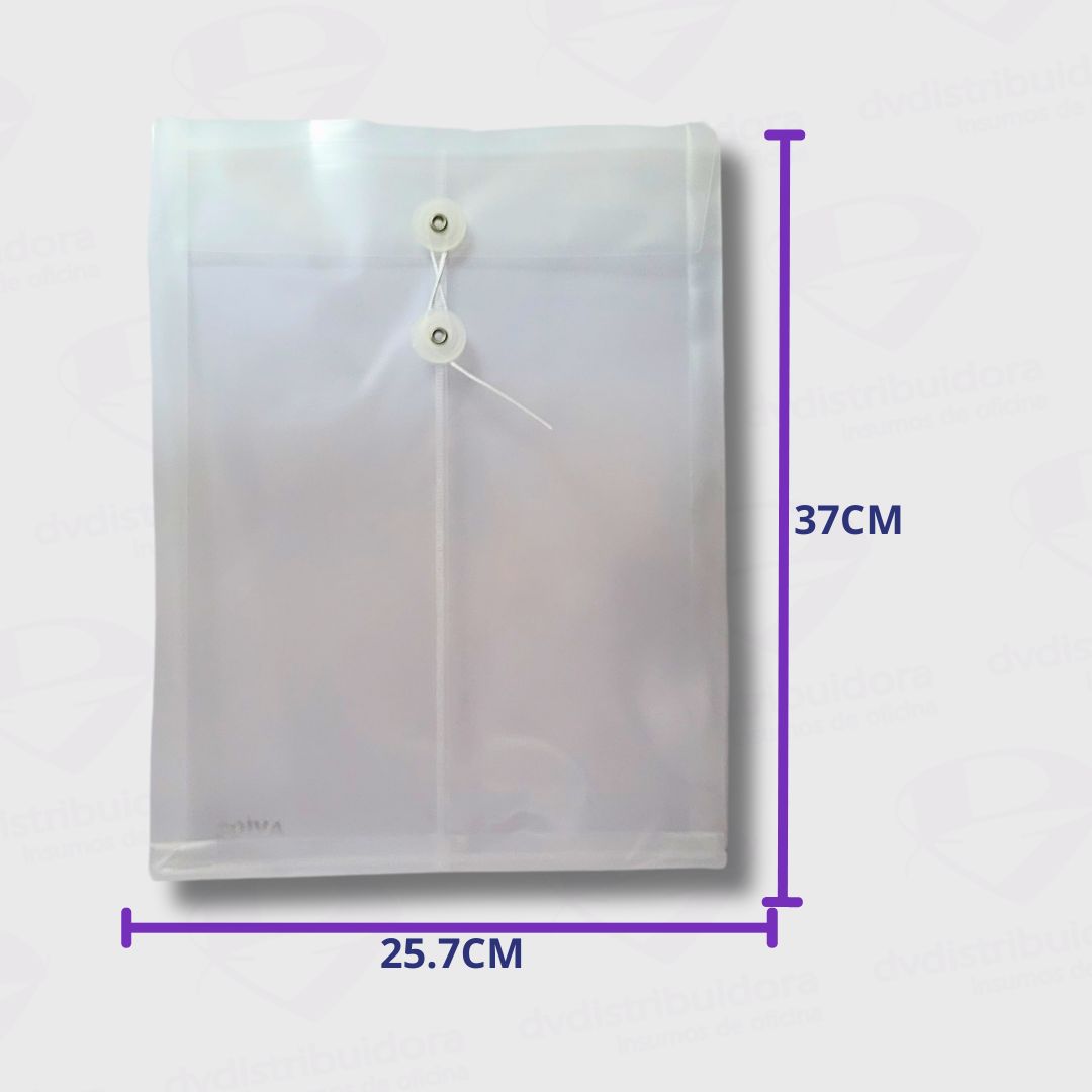 El Sobre de Plástico con Traba de Hilo y Tapa Vertical en tamaño Oficio se vende individualmente, asegurando practicidad y comodidad en su uso. Disponible en colores neutros para adaptarse a cualquier entorno.
