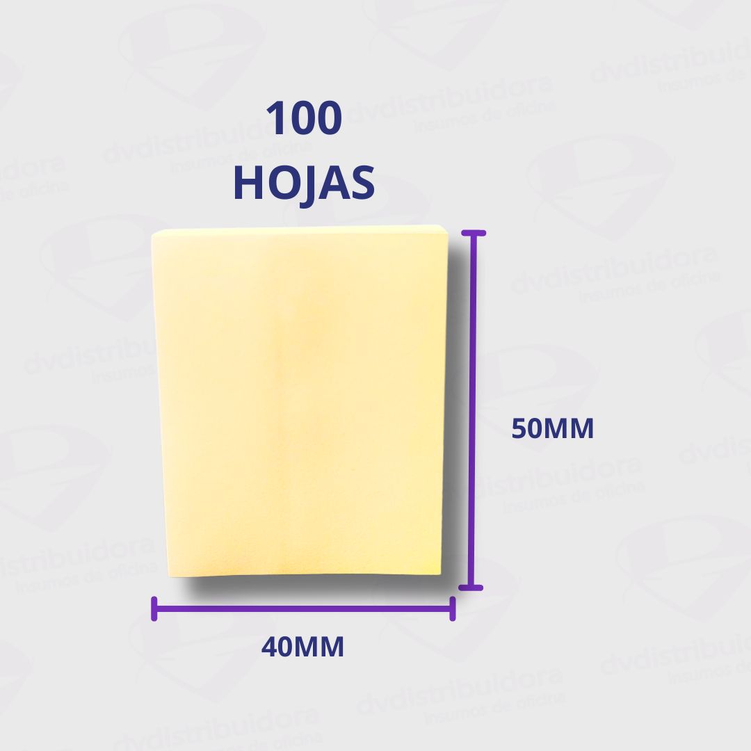 Taco de Notas Adhesivas Pizzini 50x40mm 100 Hojas – Adhesivo Reposicionable