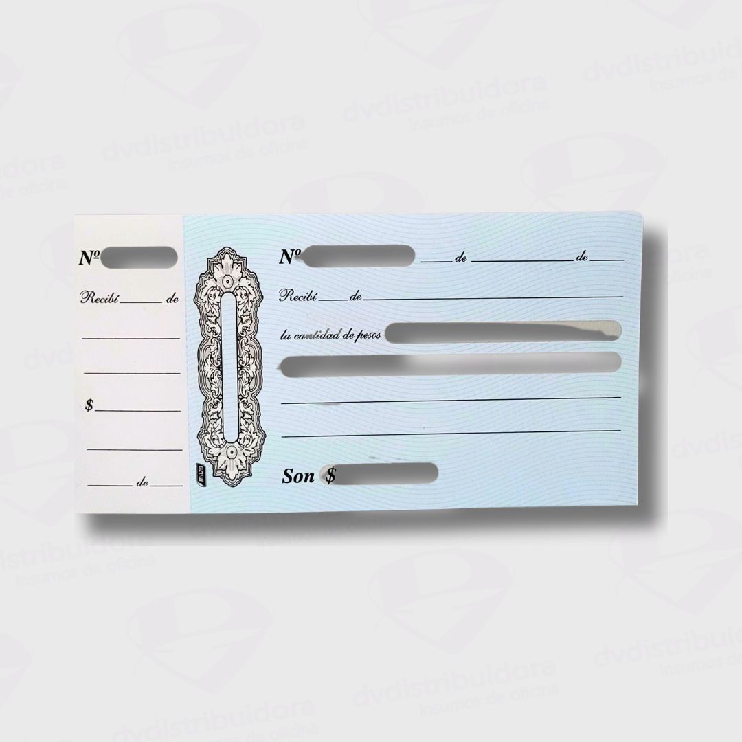 Este talonario se destaca por su diseño compacto y funcional que facilita el registro de recibos de manera eficiente, ahorrando tiempo y espacio en entornos de oficina.