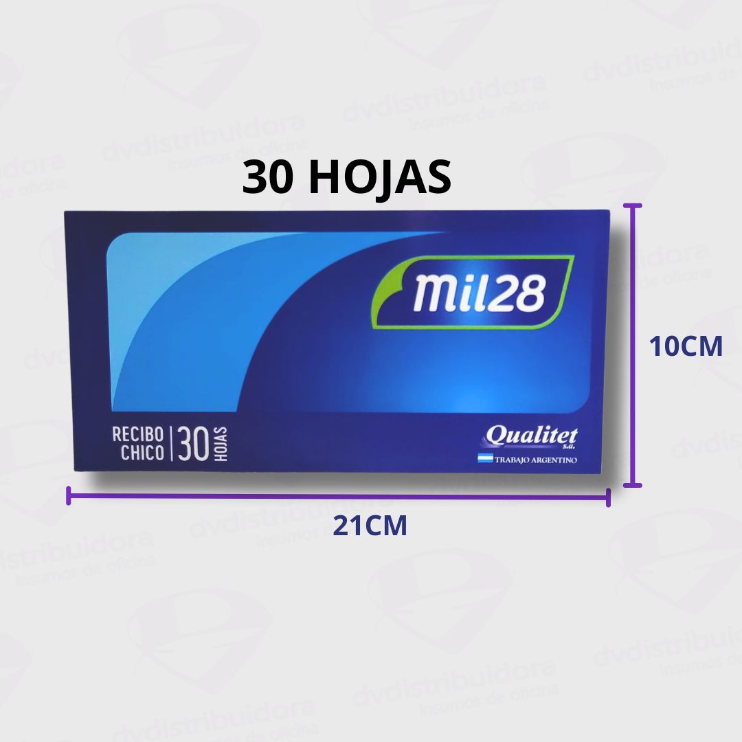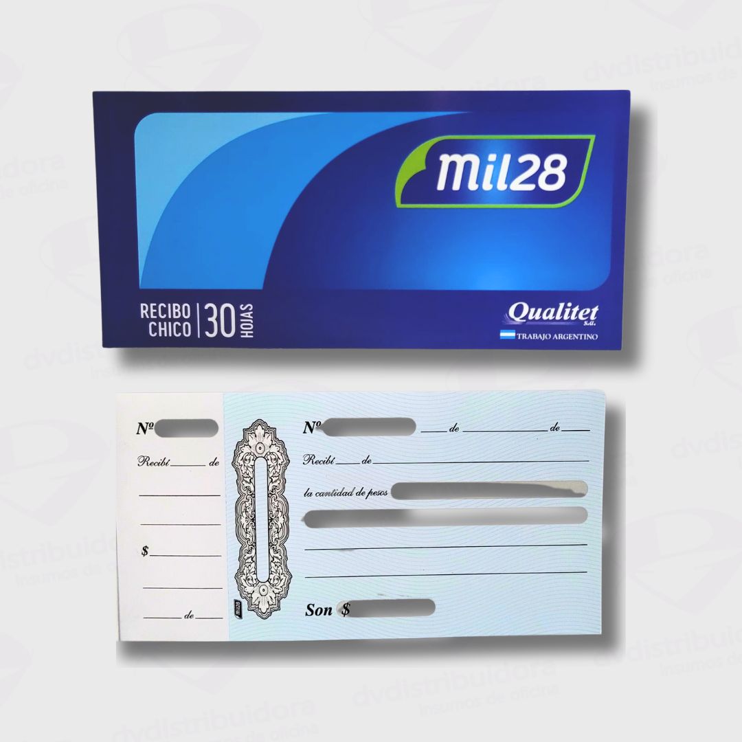 Talonario de recibí chico con 30 hojas Mil28, ideal para negocios y emprendedores. ¡Organiza tus recibos de forma práctica y profesional! ¡Envíos a todo el país!